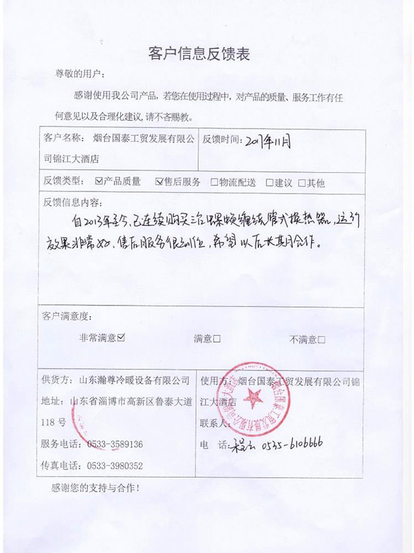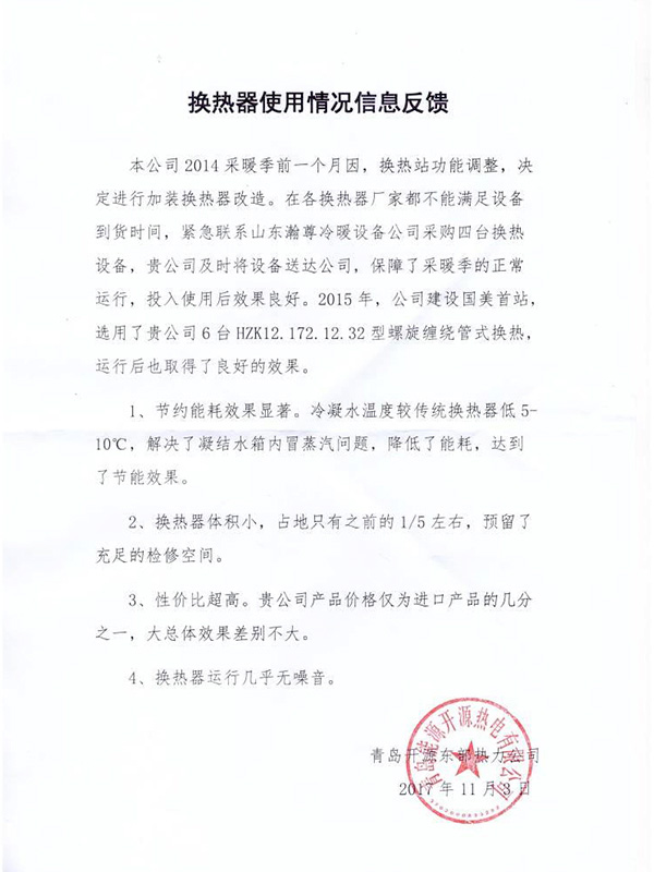 • 山東瀚尊冷暖設(shè)備有限公司坐落在美麗的齊國(guó)古都---淄博,是一家以換熱(冷凝)產(chǎn)品研發(fā)、生產(chǎn)、營(yíng)銷(xiāo)為一體的企業(yè);自2008年以來(lái),通過(guò)與中外知名熱力設(shè)備制造商合作以及自主探索和創(chuàng)新,于2010年成功研制生產(chǎn)出了公司第一臺(tái)螺旋纏繞管式換熱器;同時(shí),公司依托自身強(qiáng)大的技術(shù)力量和研發(fā)能力,于2016年成功研制生產(chǎn)無(wú)死角無(wú)菌級(jí)雙管板式換熱器,近年來(lái),公司努力走在中國(guó)換熱器行業(yè)的前列,致力于創(chuàng)造民族品牌,為用戶(hù)提供專(zhuān)業(yè)技術(shù)支持與服務(wù)......